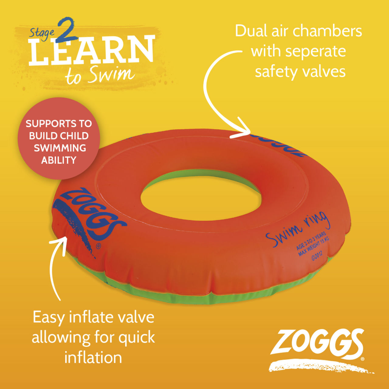 Our Zoggs Swim Ring is a great learn to swim aid, encouraging children to kick in the water and develop their swimming ability. The ring will sit around their chest allowing their arms to be free to paddle about. The Swim Ring is ideal for added support around the chest if children aren't quite ready to move onto armbands just yet.